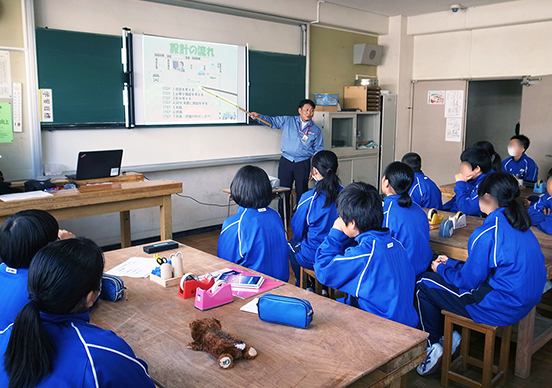 2019.04.23お知らせ中学生向け出張授業「設計体験・構造解析体験」を開催しました仕事を活かした社会貢献活動として中学生を対象とした出張授業を行いました。3月13日(水)、神奈川県厚木市立小鮎中学校の1年生を対象に行ったこの出張授業では、自動車の設計や構造解析の仕事を紹介したり、仕事でやりがいを感じた体験などの話をしました。設計や構造解析の仕事を実際に感じてもらうため身近なテーマでグループワークを行い、画用紙を使ったタブレットスタンドの設計体験や、パソコンを使って荷物を掛けるフックを題材に形状や力をかけたときの構造解析体験をしてもらいました。記事一覧を見る