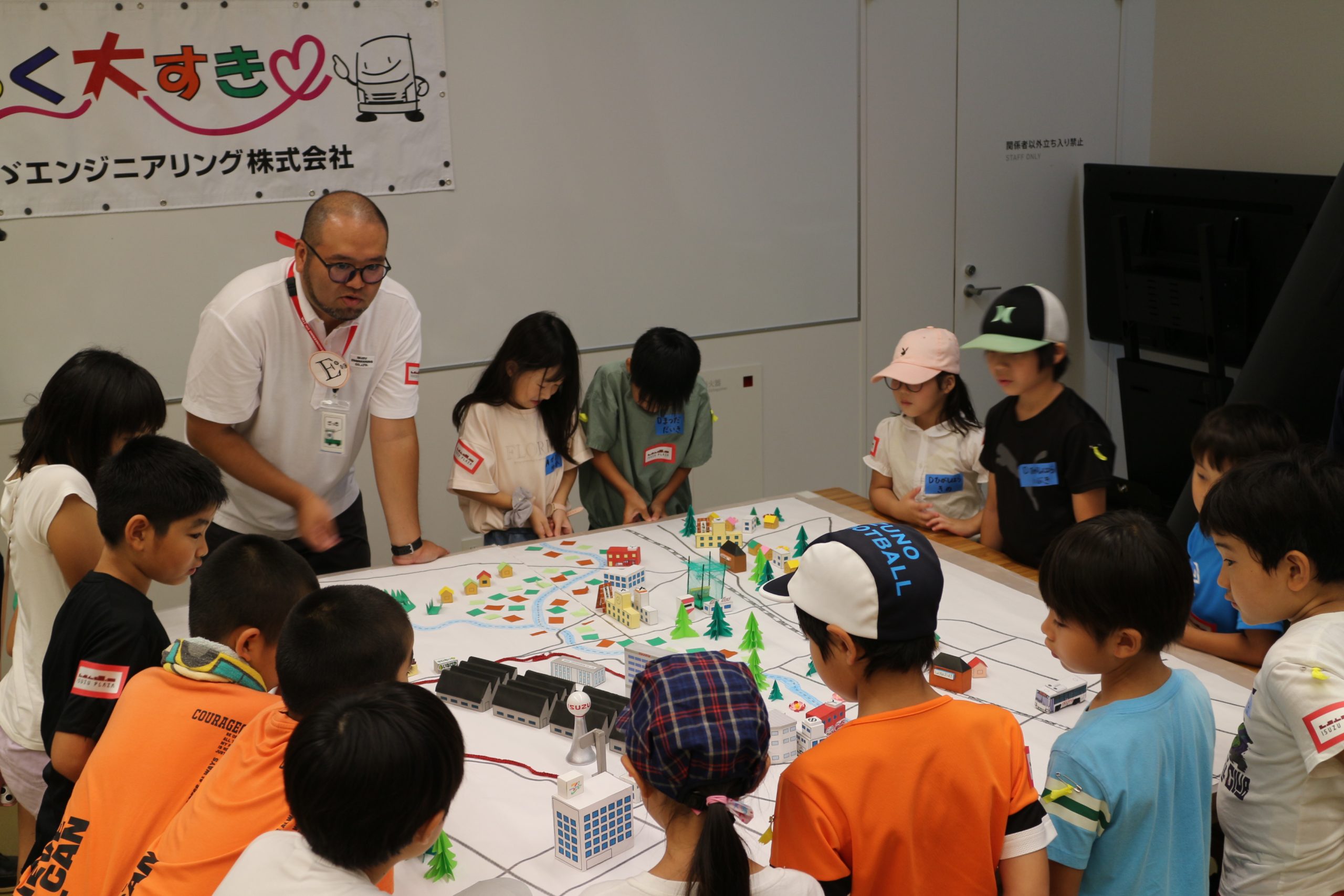 トラックについてのレクチャーや、トラックのペーパークラフト作り、作り上げたペーパークラフトを実際に走らせてみる体験を通じて、参加児童とふれあうことができました。