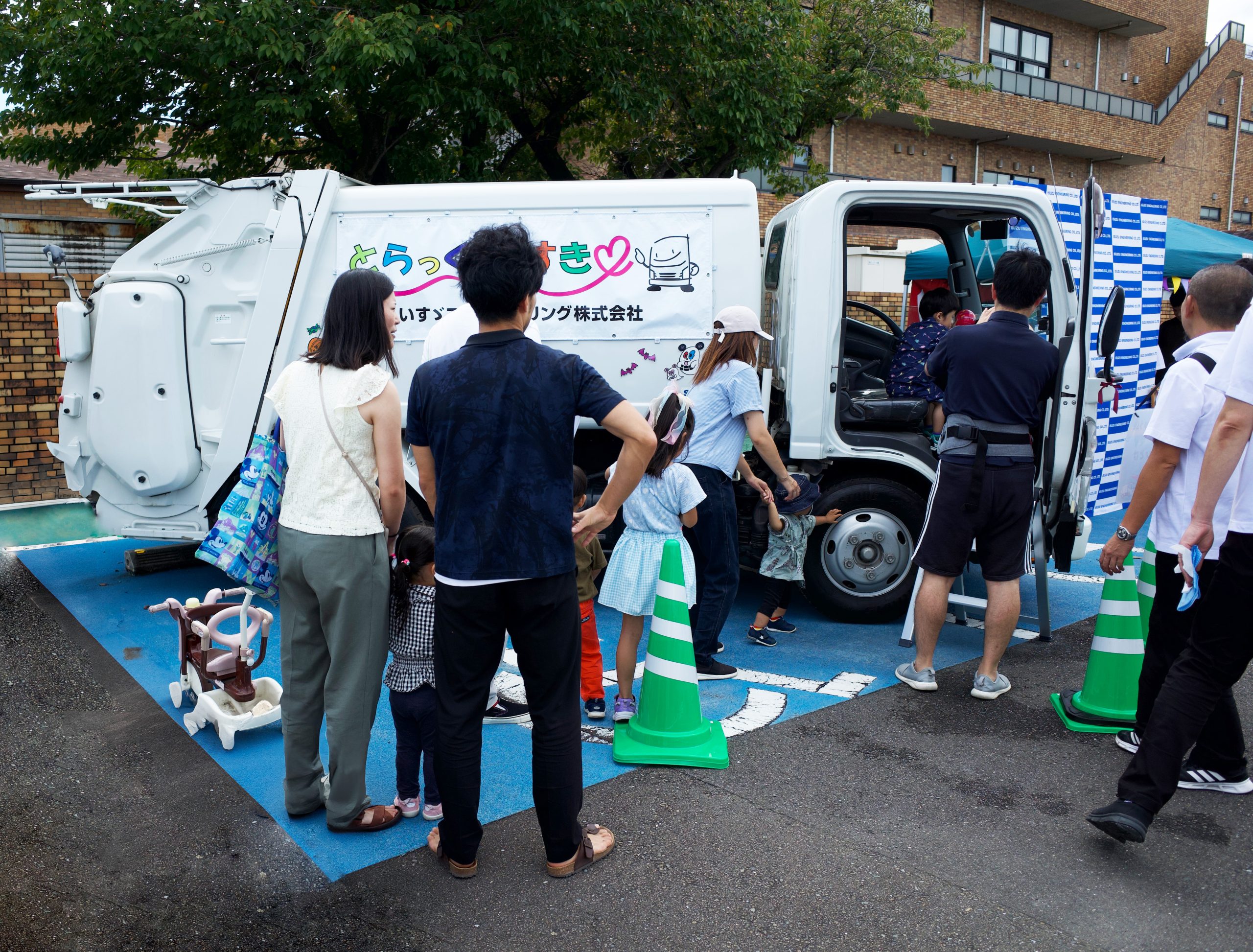 トラックを知っていただく試みとして「塵芥車」を展示し、ご来場のみなさんに運転席に乗っていただいたり、子ども達には「輪投げゲーム」を楽しんでもらったりと、たくさんの地元の方々とふれあうことができました。